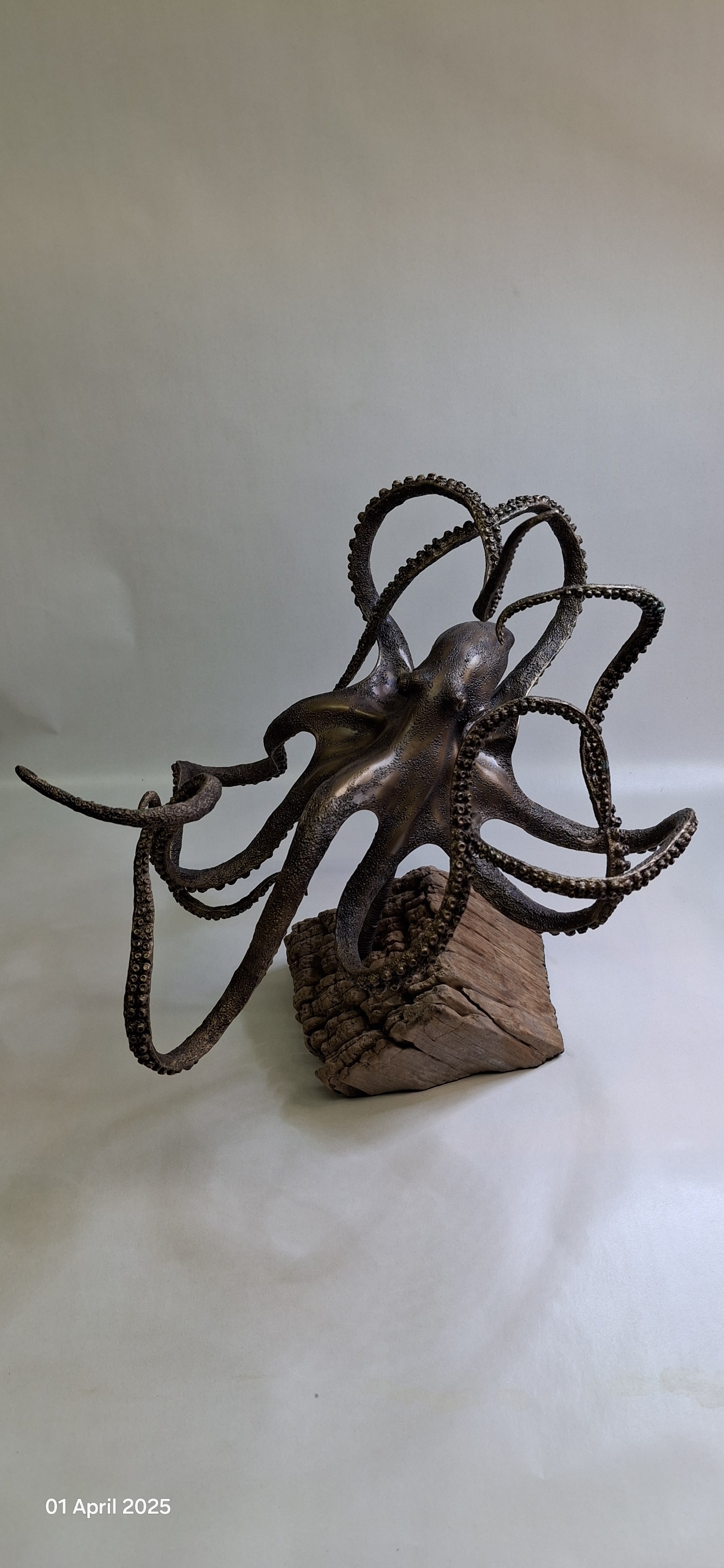 edition 7 of the dancer. Mounted on her usual Totara base with barbed wire. Alert and graceful. This 0ctopus encapsulates nearly everything I try to achieve with this creature.