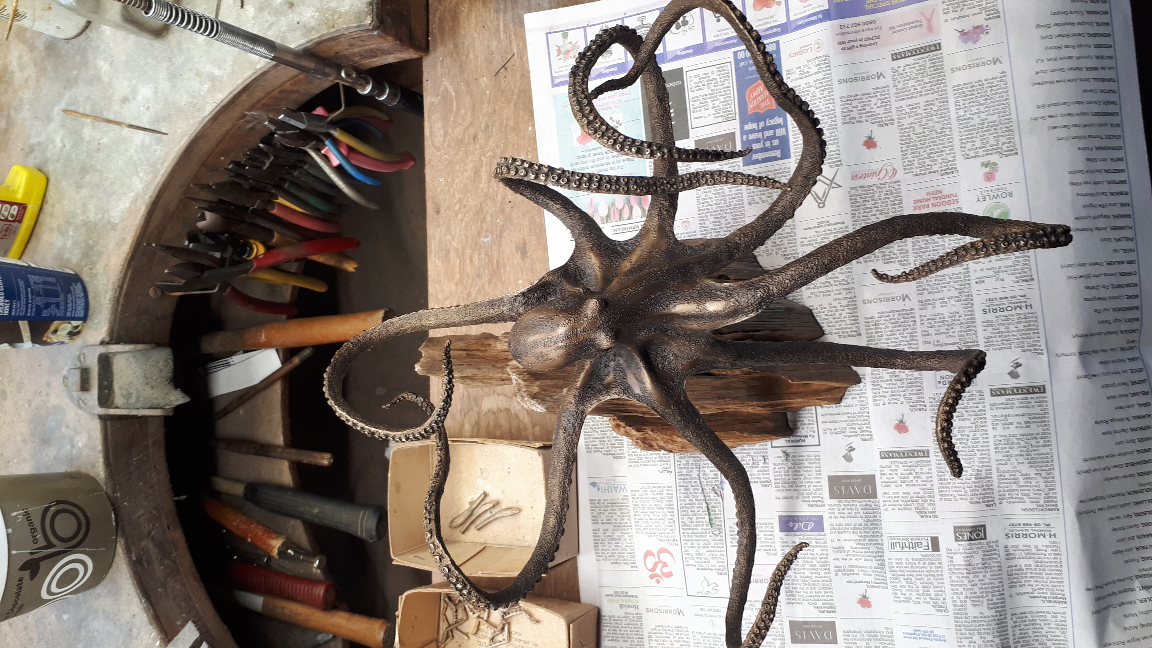 Edition Four of the dancing octopus. A change in cleaning style and patina has resulted in a finer integrated finish. I used the free flowing style for her arms that emphasise the freedom of movement these wondrous creatures enjoy.